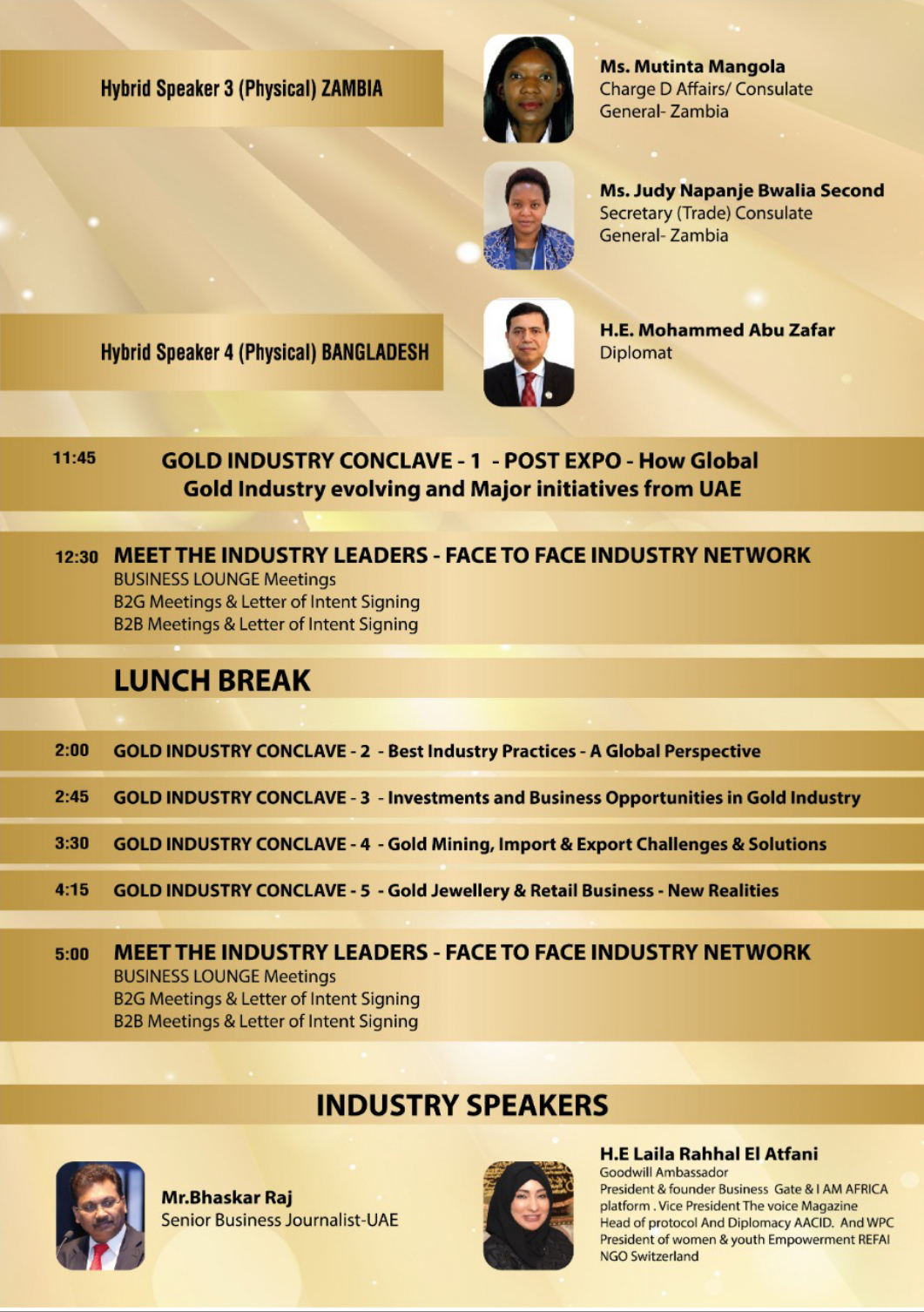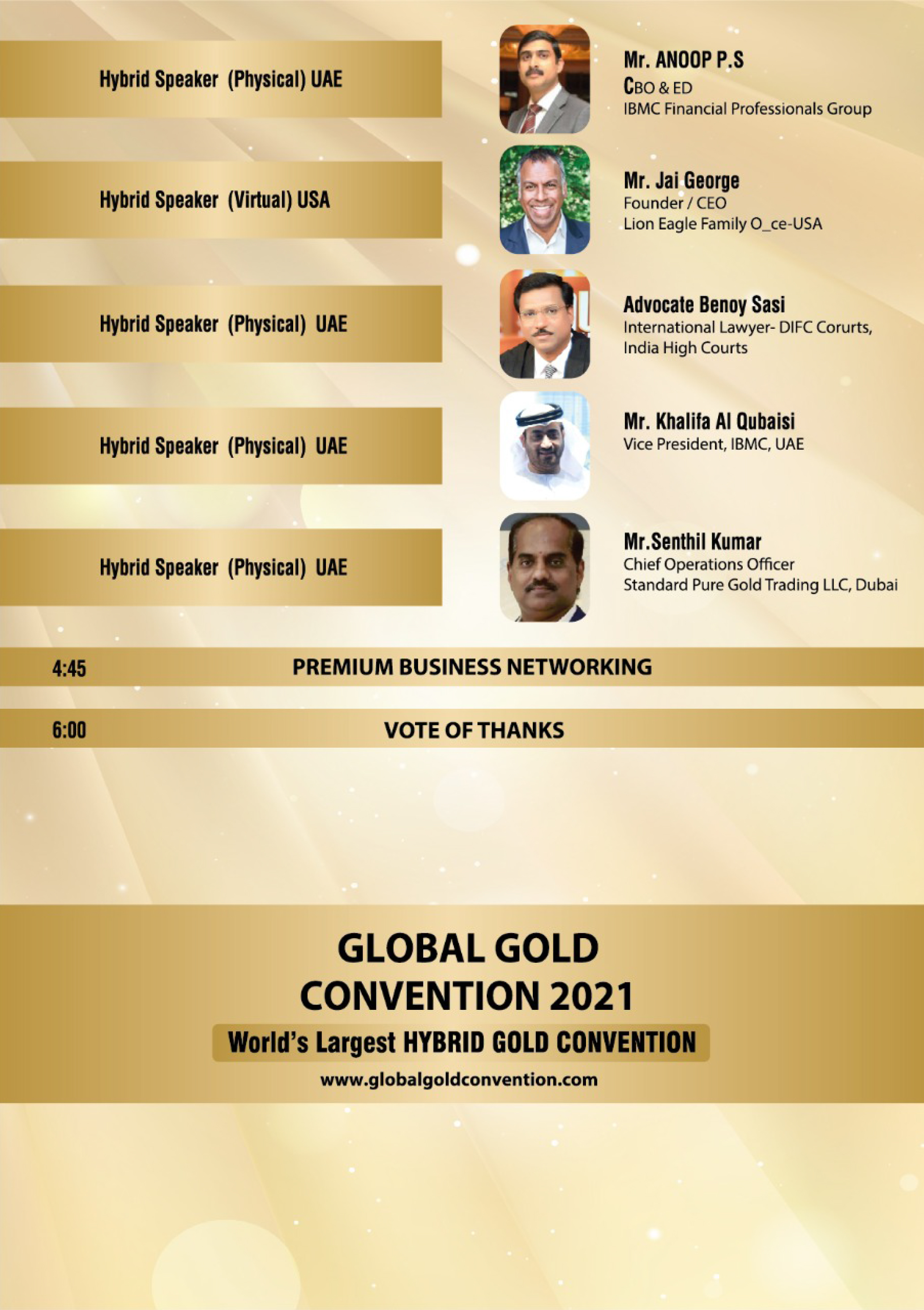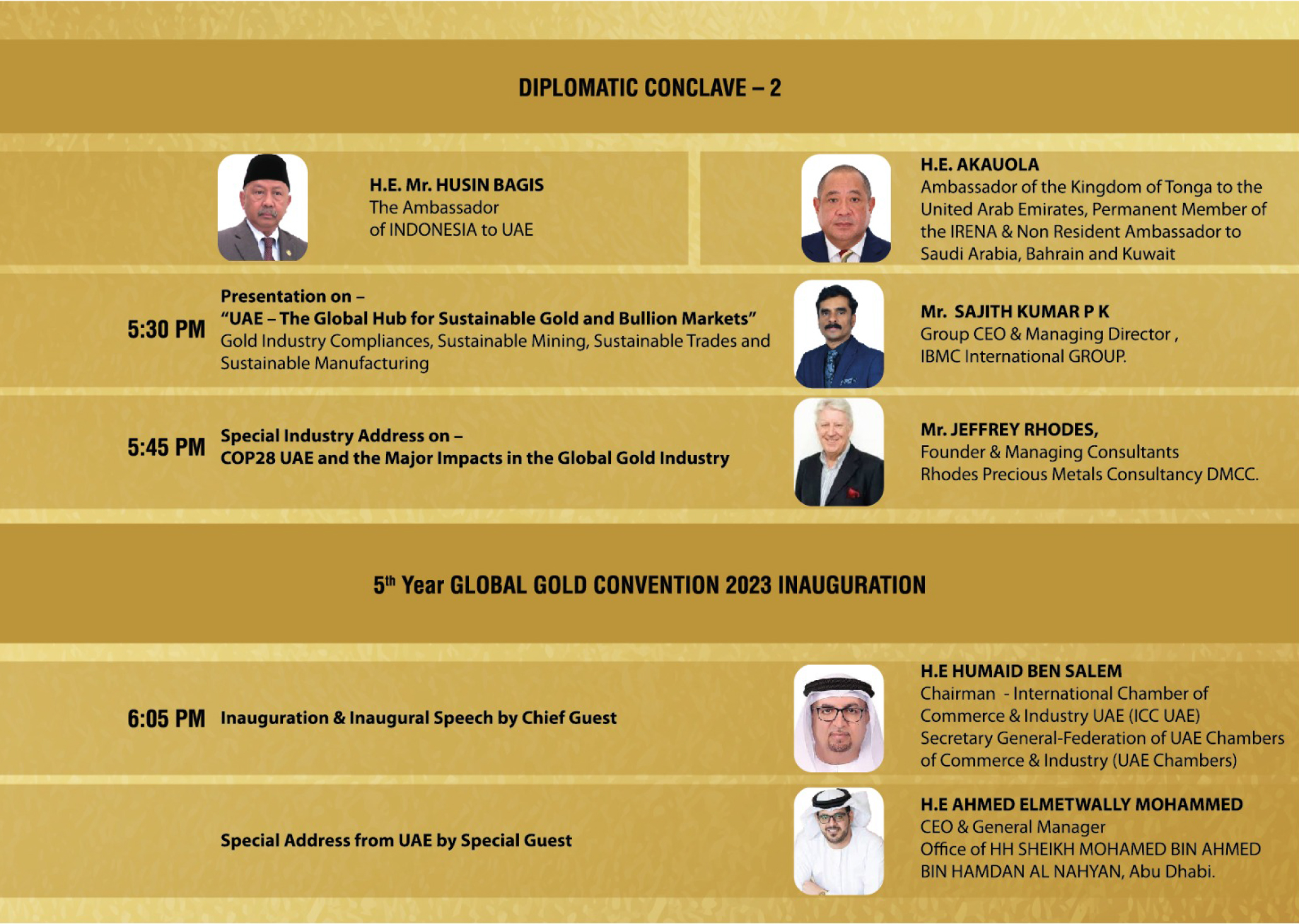 - Successfully completed 5 Years Global Gold Conventions empowering Gold, Metal and Minerals Sector Business for Gulf (2019, 2020, 2021,2022,2023) Economies.