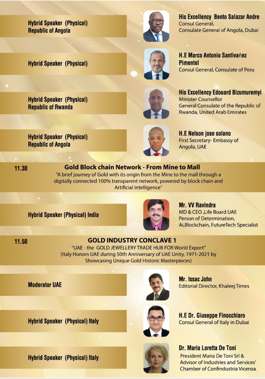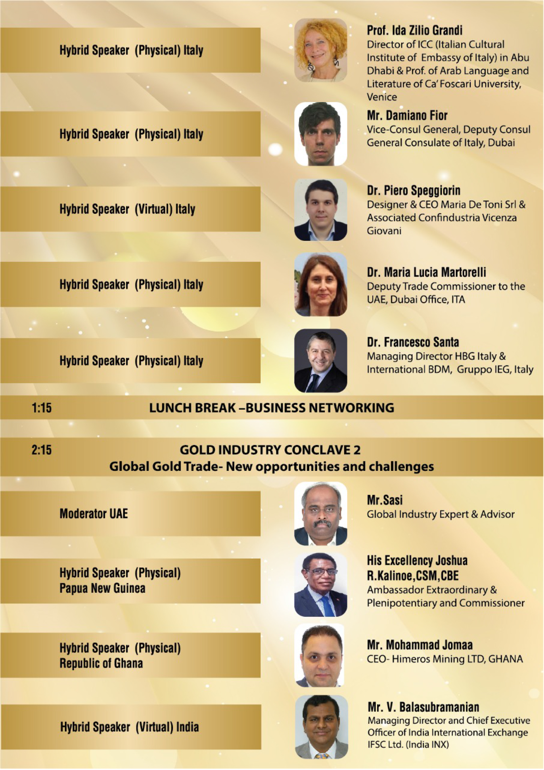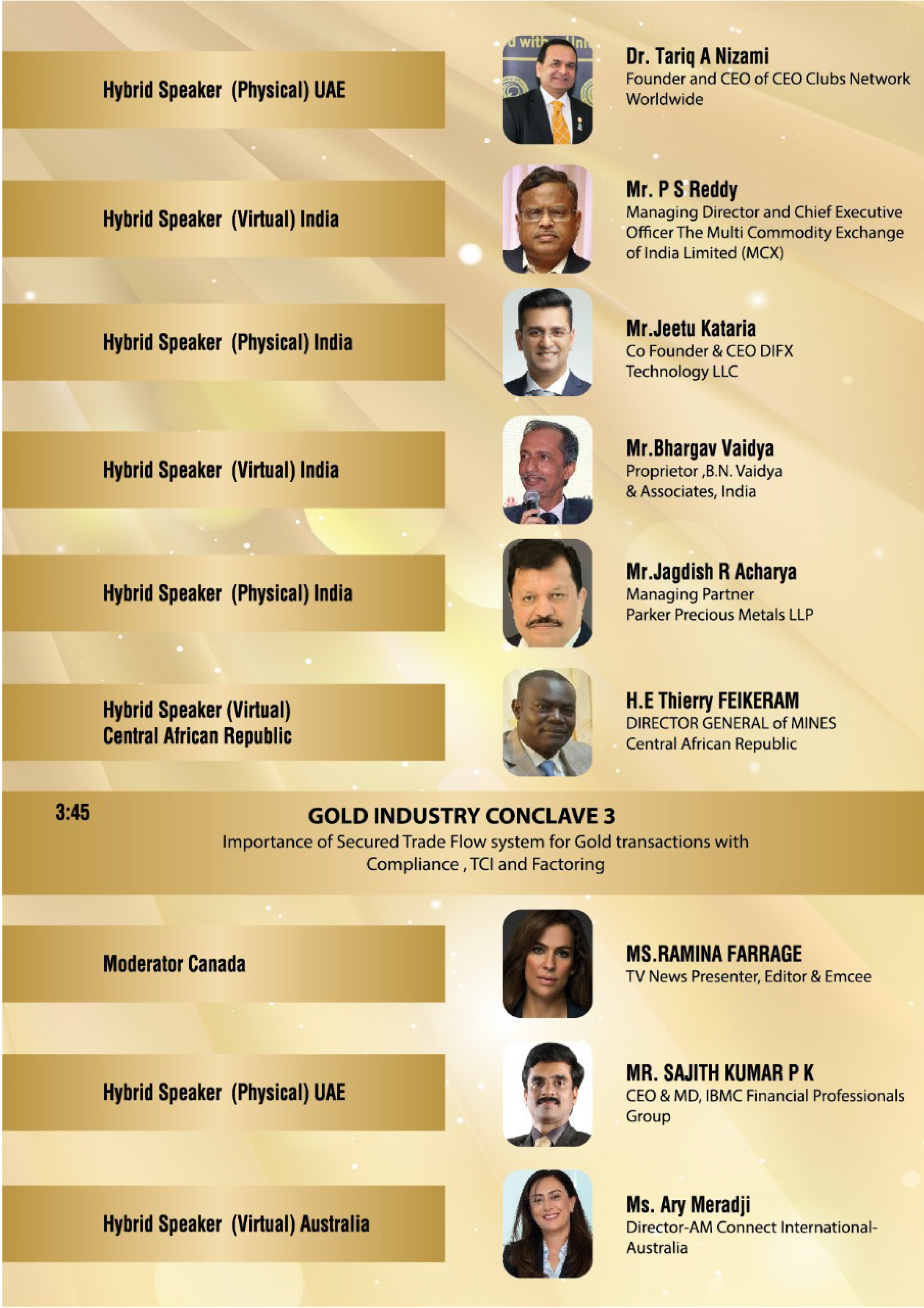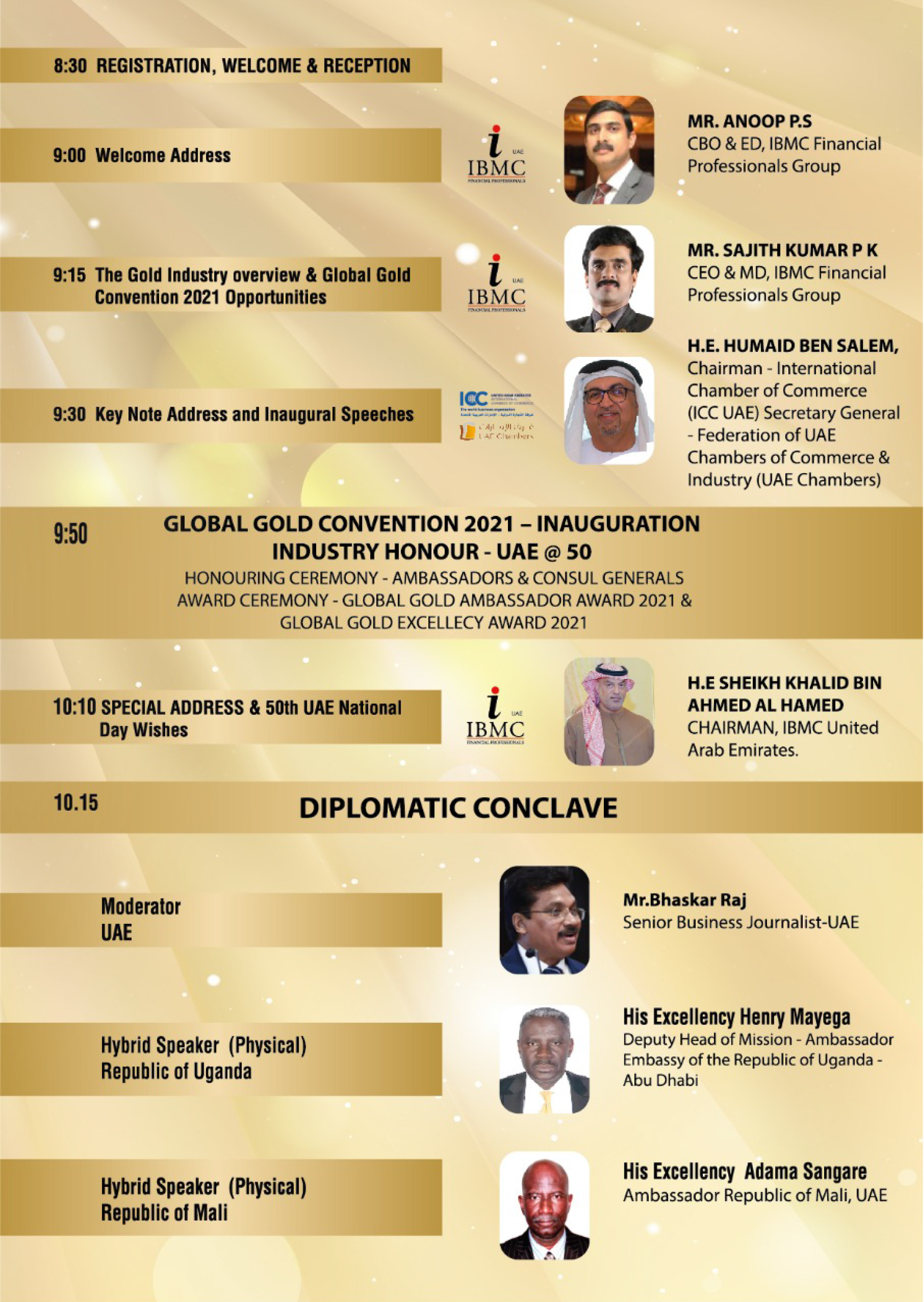 - Successfully completed 5 Years Global Gold Conventions empowering Gold, Metal and Minerals Sector Business for Gulf (2019, 2020, 2021,2022,2023) Economies.