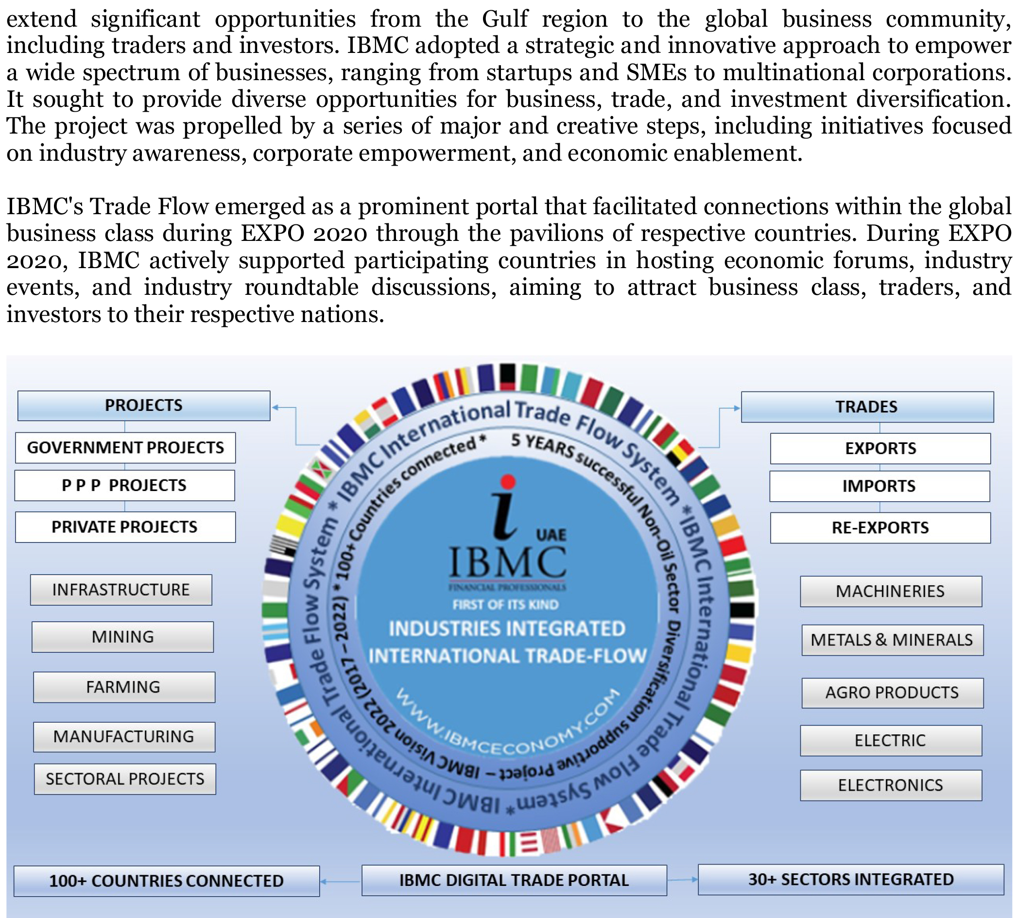 IBMC has created this unique opportunity for empowering Gulf Economies in Non-oil Sector Diversifications by engaging Global Economies. Economies and Corporate can join hands in GsmeX and avail 8 year long market and industry efforts which are created from UAE and connected with 100+ countries, integrated with 30+ Sectors along with International